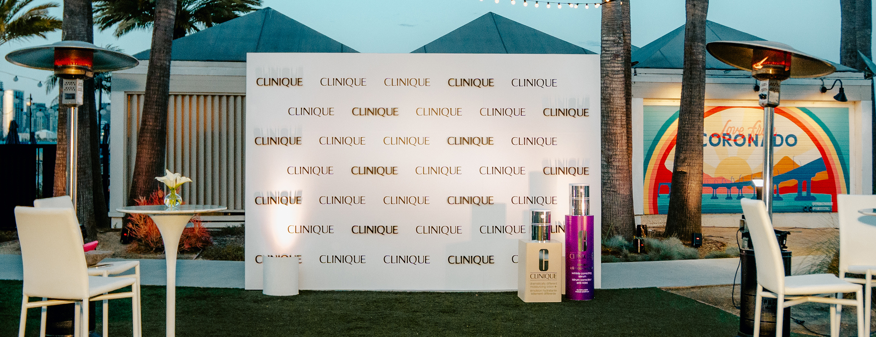 Clinique’s newest products come to life at an event that accentuates their clean and elegant brand. Subtle applications of their logo, including a lighted wall and branded displays allow the brand to speak for itself. Their products take center stage with life-sized bottles flanking a photo wall for attendees to pose beside, creating an interactive experience.